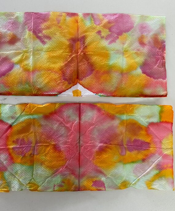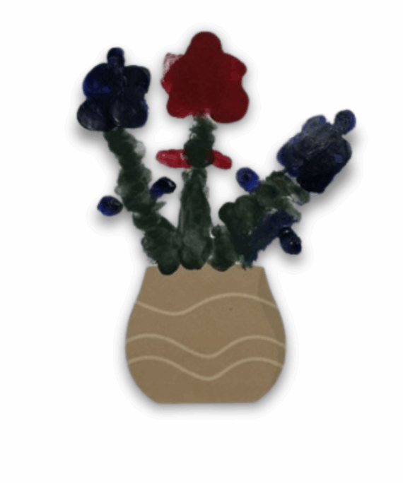 Deskripsi: Mengecap menggunakan batang tanaman membentuk gambar bunga